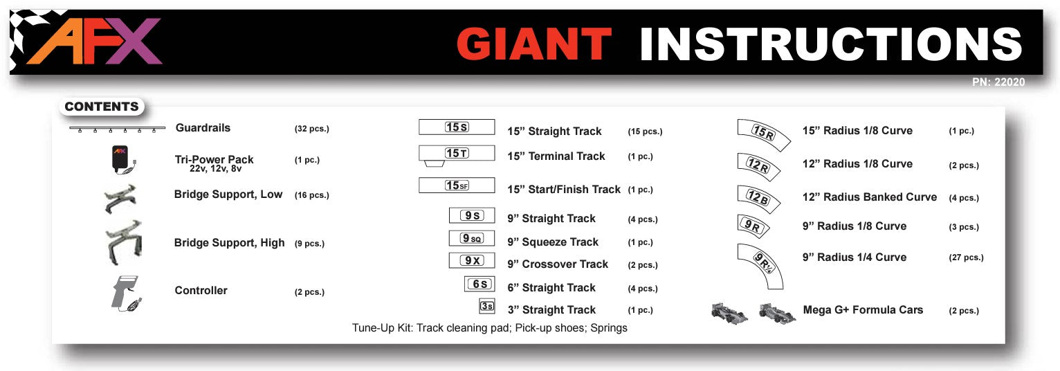 AFX Race Set 22020 Mega G+ Giant Raceway 62.5' Slot Car Race Set
