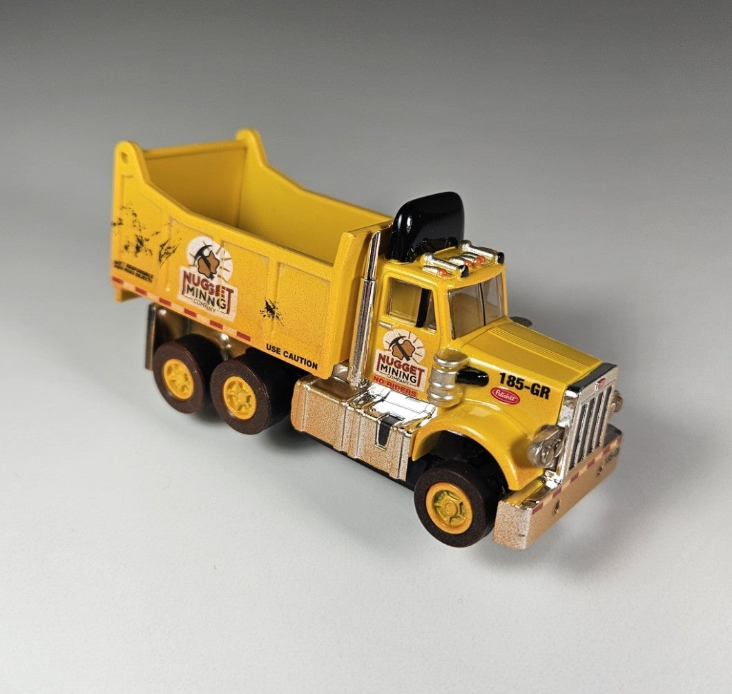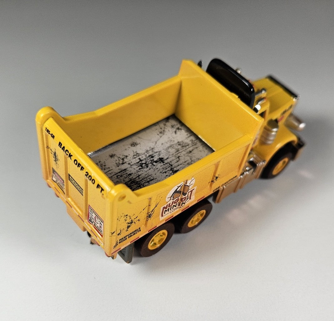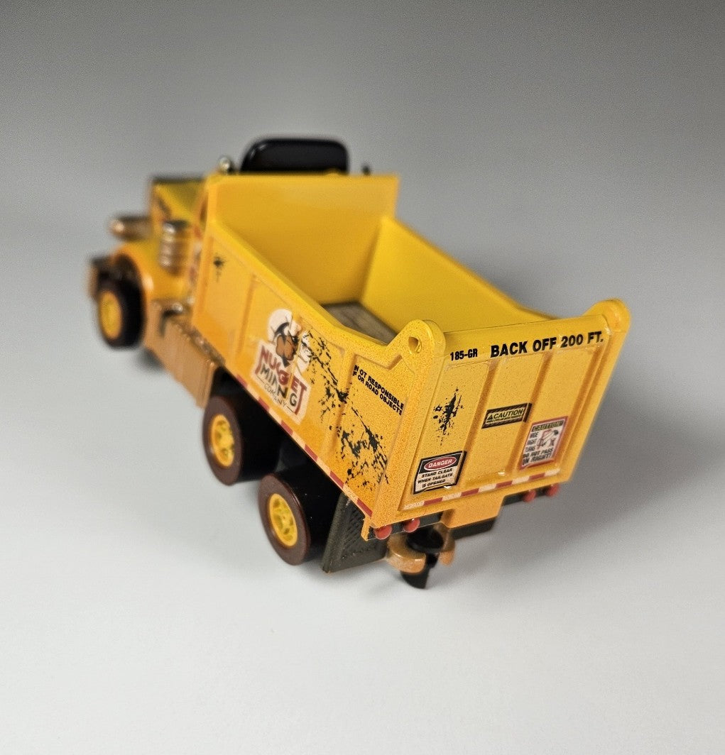 Auto World AMP Xtraction Peterbilt 359 Dump Truck (Yellow) with Working Headlights HO Scale Slot Car