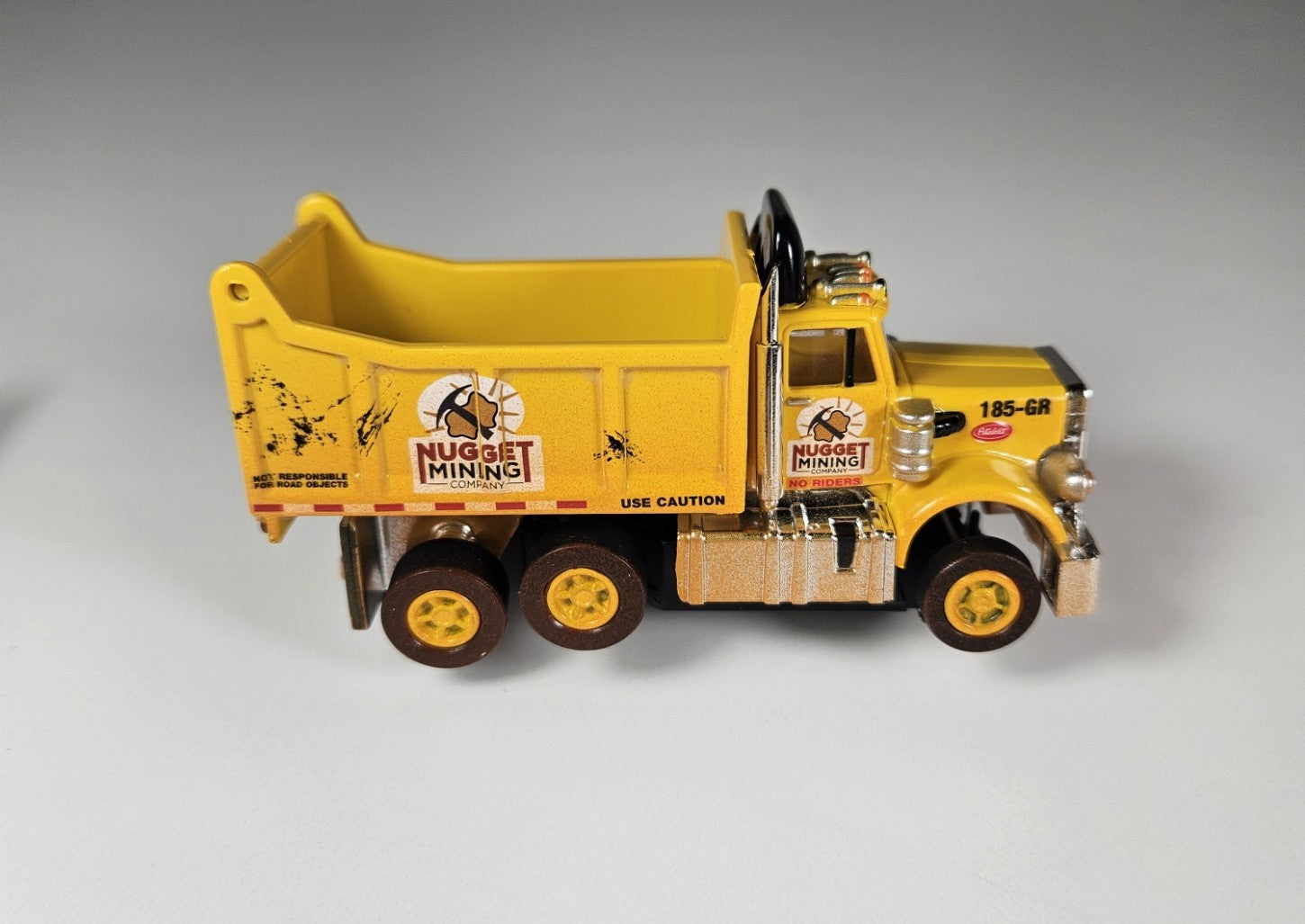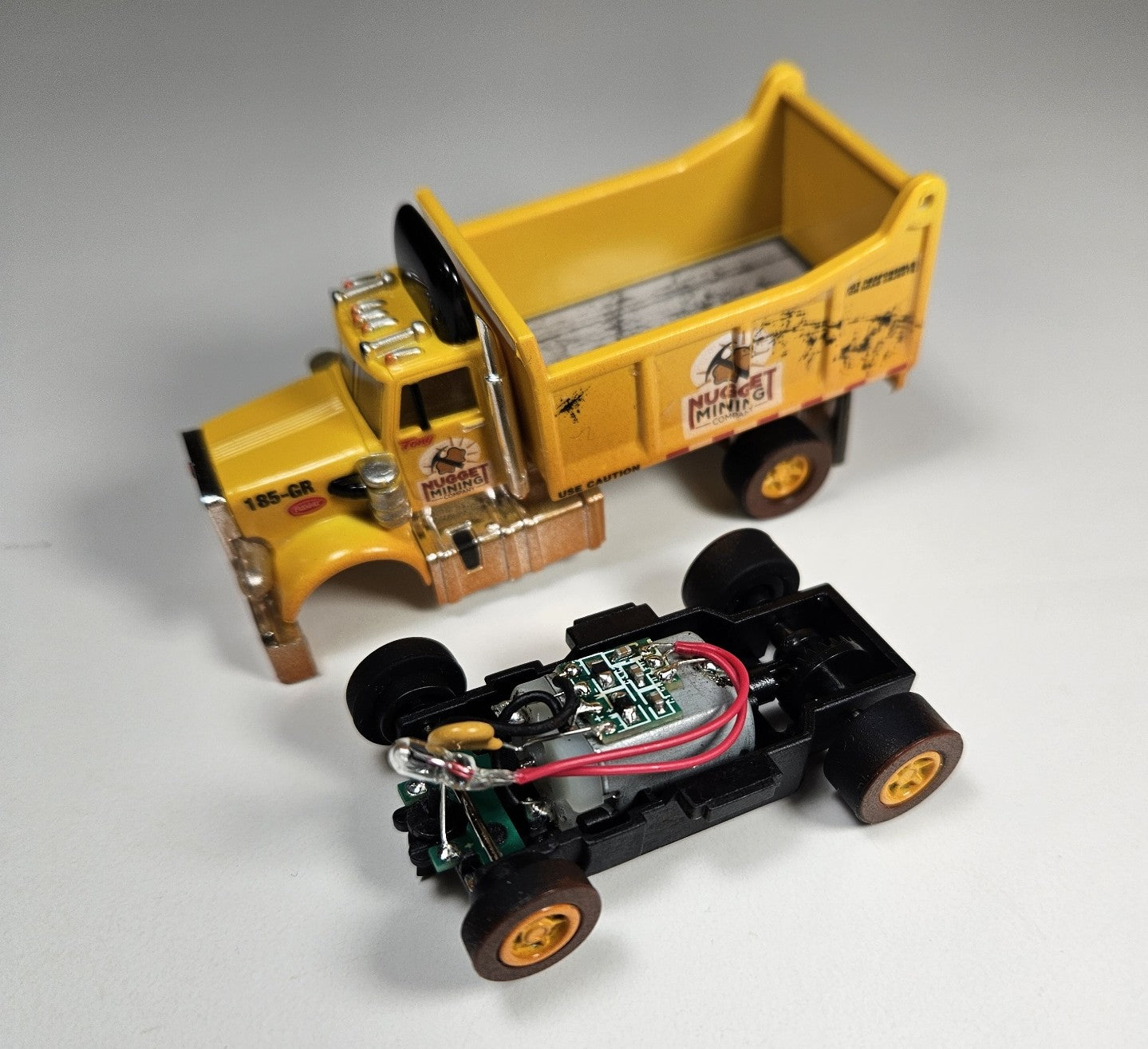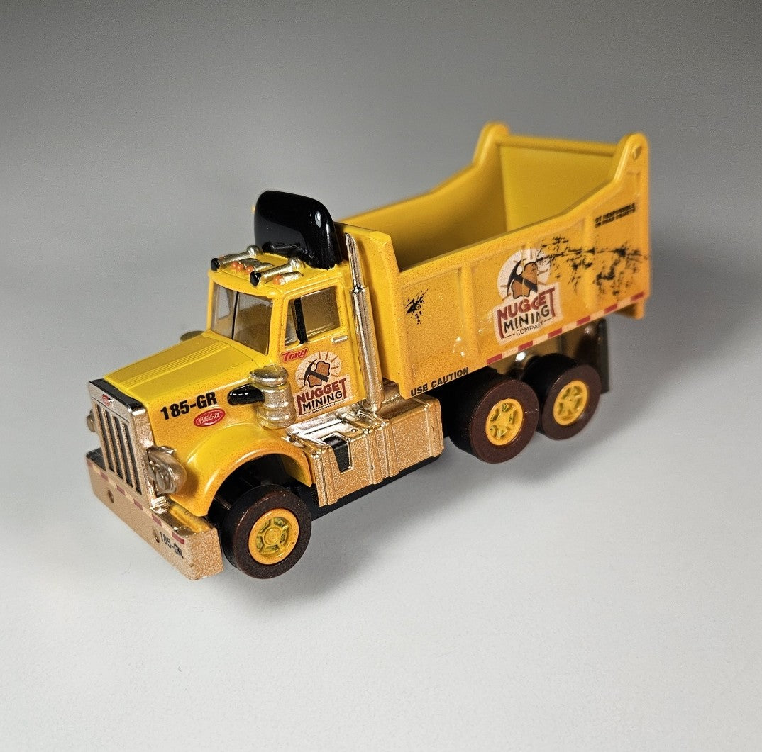 Auto World AMP Xtraction Peterbilt 359 Dump Truck (Yellow) with Working Headlights HO Scale Slot Car