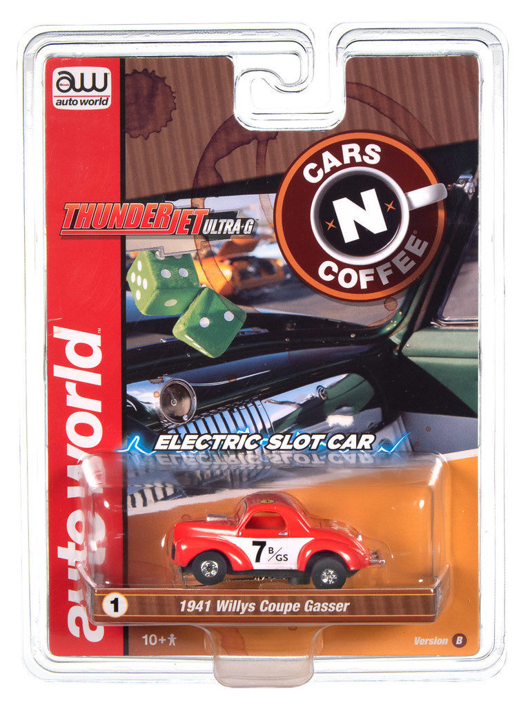 Auto World Thunderjet SC408-1B 1941 Willys Coupe Gasser Red w/ Race Graphics HO Scale Slot Car