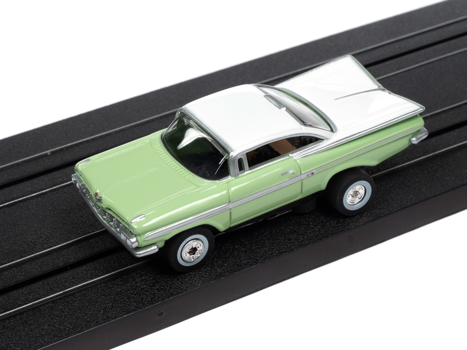 Auto World Thunderjet SC408-3A 1959 Chevy Impala Seafoam Green & White HO Scale Slot Car