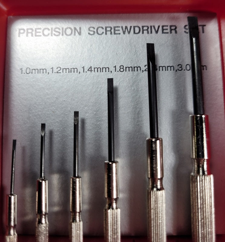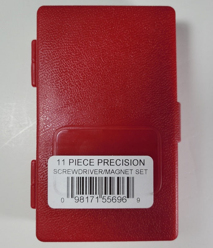 Contains the following: 9 screwdrivers (3 Phillips Head Screwdrivers, 6 Flathead Screwdrivers) 1 Needle Point, and 1 Magnet